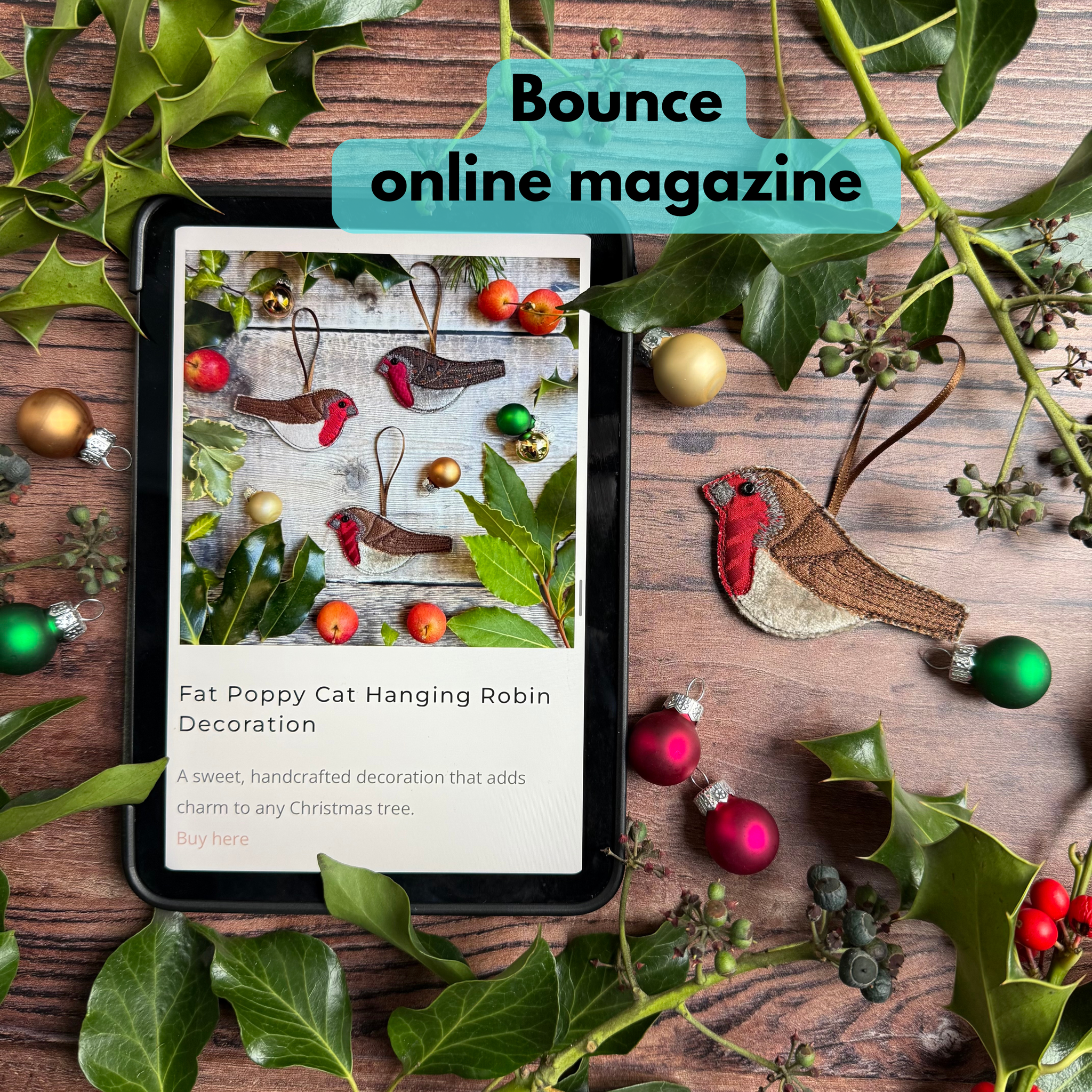 The robins are decorated with machine embroidery and a glass bead for an eye.