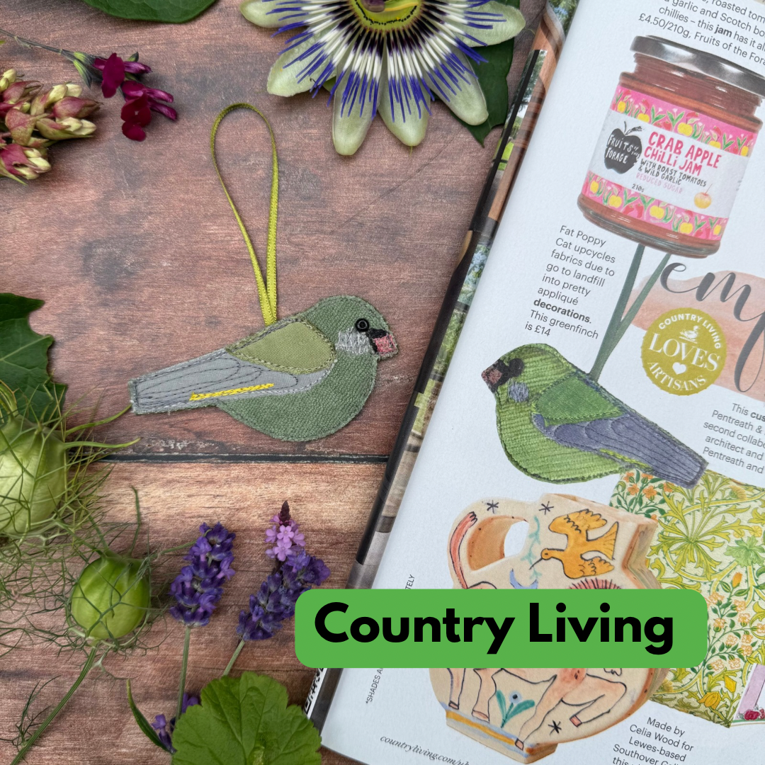 These fabulous Greenfinches are made from fabric that was due to go to landfill.