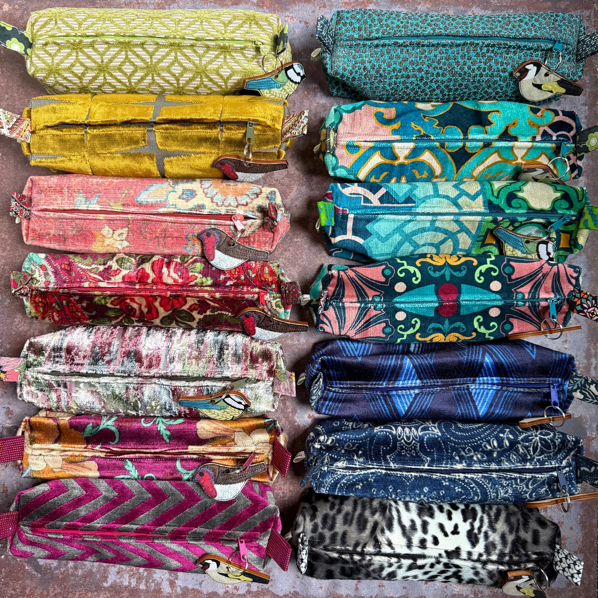 These pencil cases are made from velvet upholstery fabric that was due for landfill. They are made from the off cuts left over from bespoke sofas and swatch books you would pick your fabric from. Once the component parts are cut for the sofa the bits that are not big enough to make anything else from are deemed rubbish and thrown away. As this fabric is upholstery grade it means it's durable and hard wearing so no need to be lined.