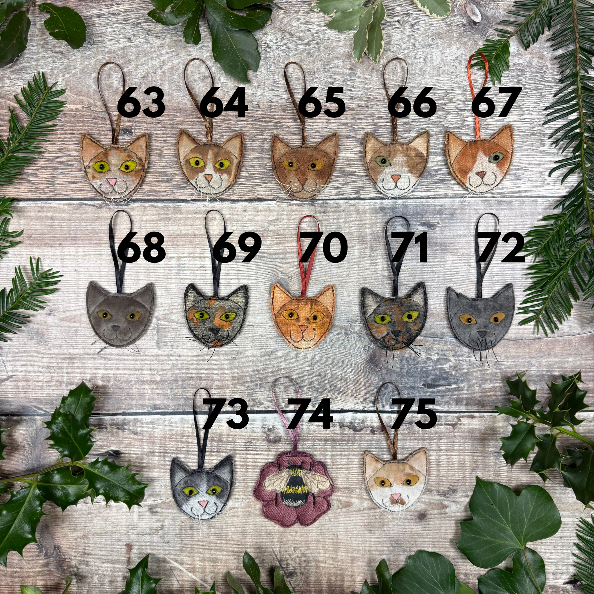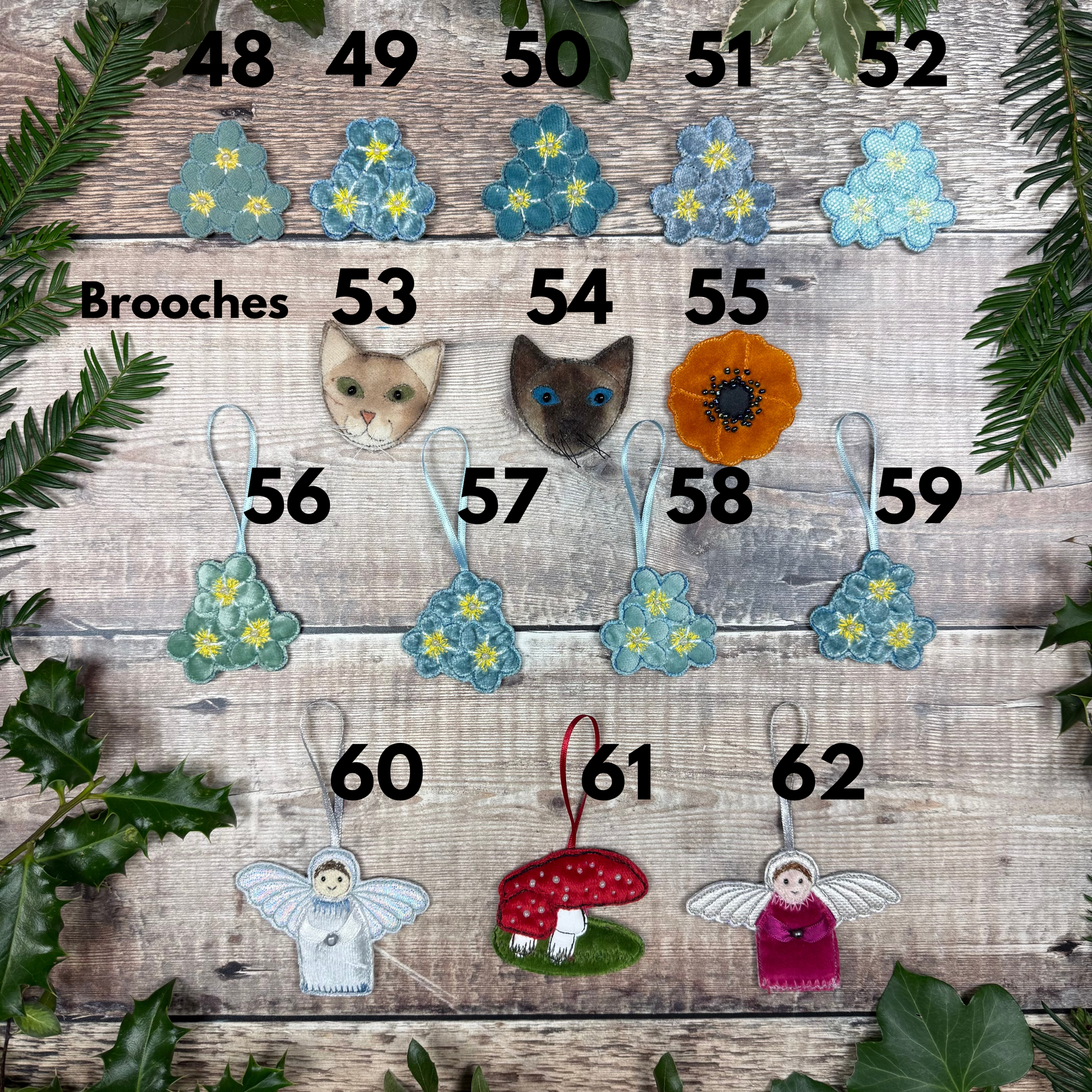 These brooches, hanging decorations, mosaic numbers, fabric and felt vase are all old stock, prototypes, discontinued or just came out a bit wonky. So once this stock is gone it’s gone for good!